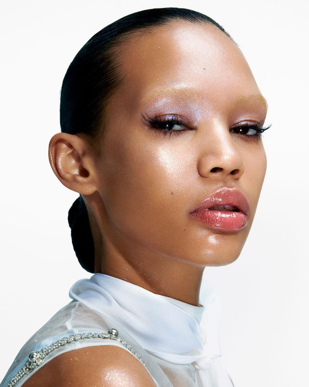 Еще одной важной деталью в мейкапе будет сияние – кожа лица должна сверкать на свете. Это заметно на подиуме Gucci весны-лета 2023. Визажист Томас Де Клюйвер создал особый хайлайтер, имитирующий эффект ретросъемок со вспышкой.