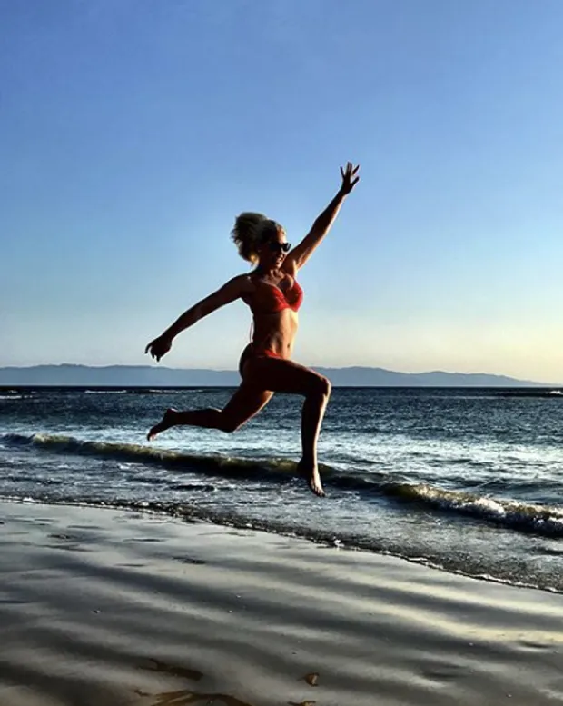 На фотографии Кэтрин Хейгл позирует перед камерой в красном купальнике. Звезда высоко подпрыгнула, демонстрируя свою отличную физическую форму. Сделала Хейгл это на пляже во время семейного отдыха в Мексике.