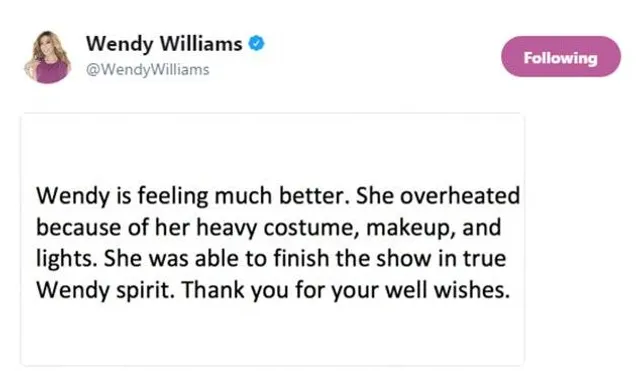 Впрочем, Уильямс сумела вернуться в эфир и завершить шоу.
