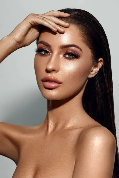 - Если вы все-таки хотите подчеркнуть остроту рис, можно использовать жидкий хайлайтер и румяна. Небольшое количество блеска на скулах не перегрузит образ.
