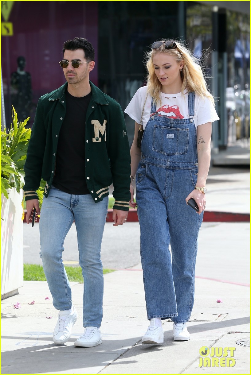Среди аксессуаров – черный клатч, солнцезащитные очки и золотые часы. Во время прогулки Софи Тернер появилась с дневным макияжем, оставив волосы распущенными. Аутфит звезды гармонировал с образом мужа, который выбрал светлые джинсы, черную футболку и темно-зеленый джемпер.