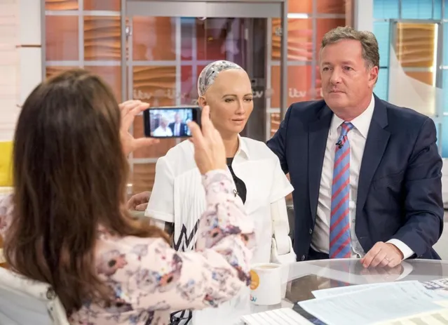 Затем робота спросили, что она может рассказать о Великобритании. София призналась, что страна привлекает ее "великолепной архитектурой, искусством и людьми". Ведущий Пирс Морган шутливо ответил ей: "Да ты маленький фрик", на что София заявила: "Мне нравится ваш шикарный английский акцент. Он действительно хорошо звучит."