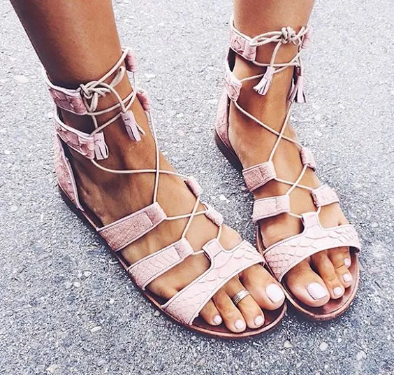 Сандалии с ремешками являются идеальной альтернативой каблукам. Они удобны и легки. А ремешки добавляют интересную деталь на сандалиях.