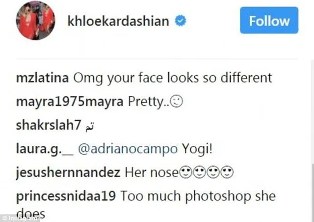 Вид у Хлои был безупречен. Однако ее подписчики обвинили звезду в коррекции формы носа.