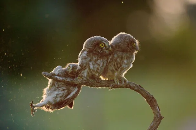 При этом лучшим был признан снимок венгерского фотографа Тибора Керц, на котором изображены три совы, одна из которых падает с ветки.