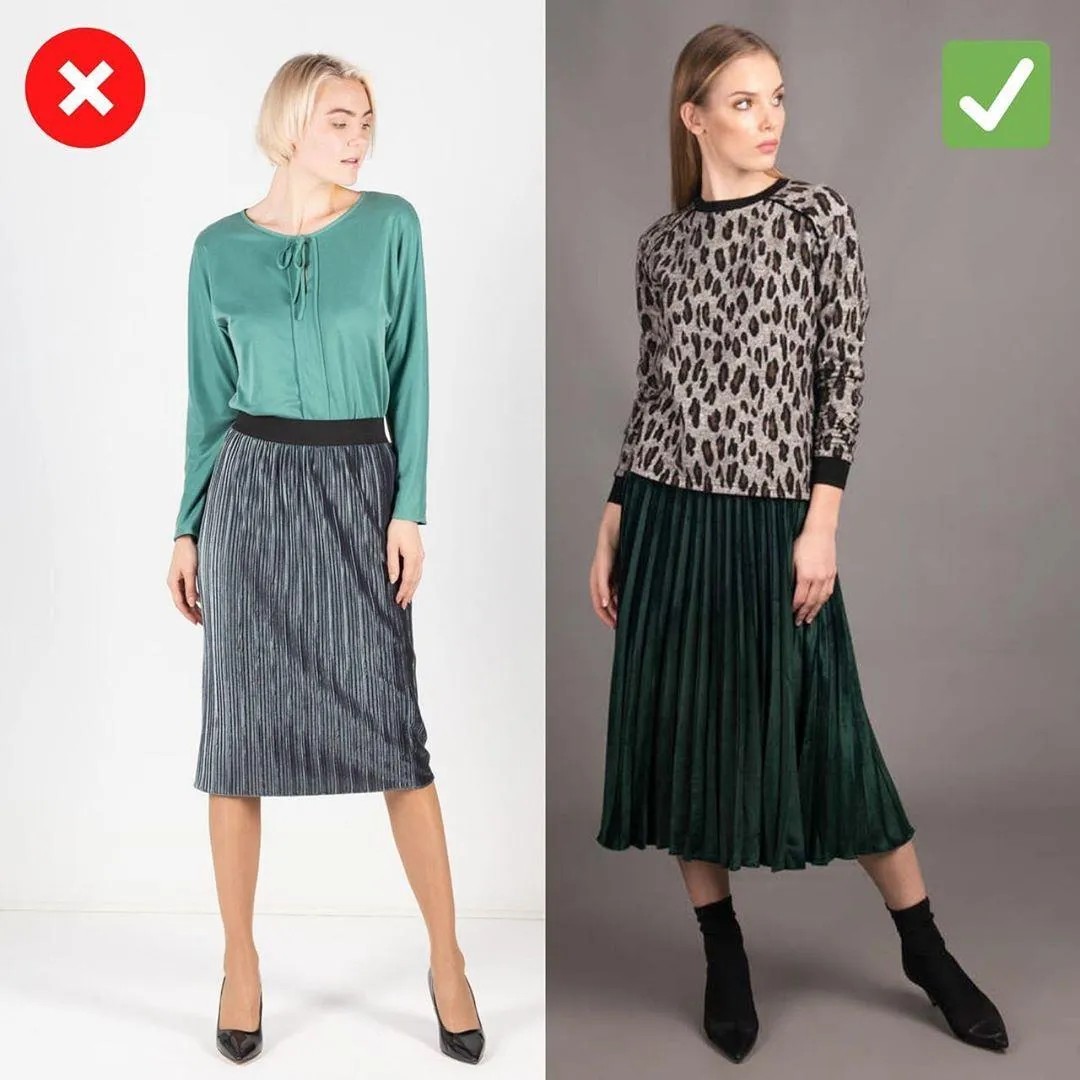 Если решили приобрести такую вещь, то заметьте: выбирайте длину миди и плотную ткань. Также модельер отмечает: широкая черная резинка на поясе может сыграть с вами злую шутку.