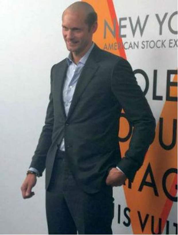 На мероприятии Louis Vuitton в Нью-Йорке Скарсгард пришел с выстриженной в центре головы лысиной.