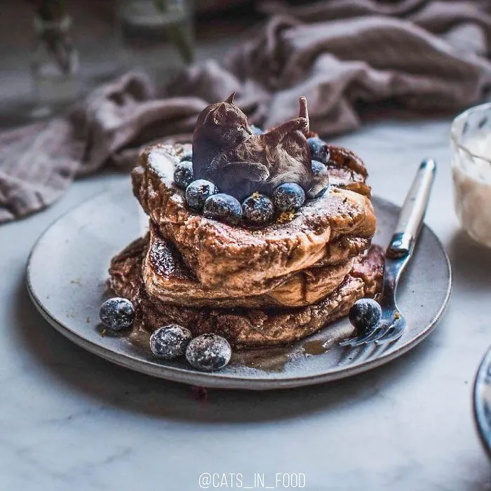 По словам девушки, в конце января она придумала и запустила страницу в Instagram под названием Cats In Food, где публикует фото с "дорисованными" к еде мордочками разных котов.