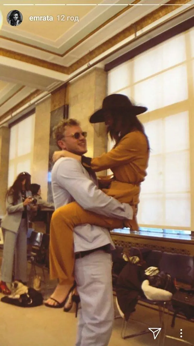 Церемония бракосочетания, на которой присутствовали только самые близкие люди, прошла в Нью-Йорке. Модель вместо свадебной и пышного платья, выбрала строгий костюм горчичного цвета от Zara, а также шляпку с французской сетчатой вуалью.