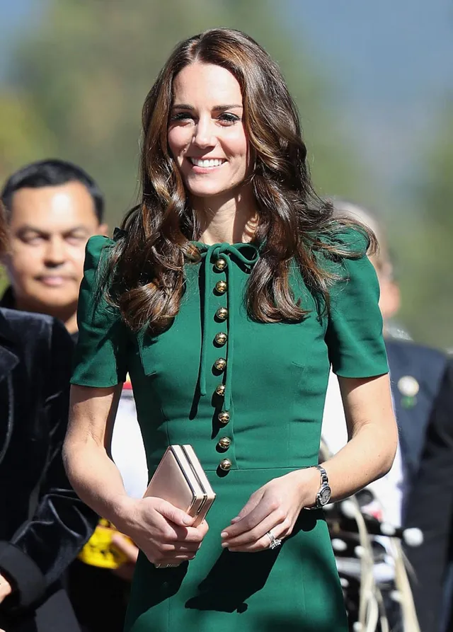 Еще в прошлом году, во время визита с принцем Уильямом в Канаду, Кейт продемонстрировала целую палитру модных образов, и один из них особенно запомнился ее поклонникам. Она вышла на волейбольный матч в местном университете в ярко-изумрудном платье Dolce & Gabbana.