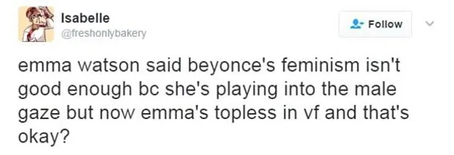 Поводом для такой бурной реакции стало недавнее заявление Эммы о Бейонсе. Она, по словам Уотсон, позиционирует себя как феминистка, но когда включаются камеры она позволяет себе обнажаться.
