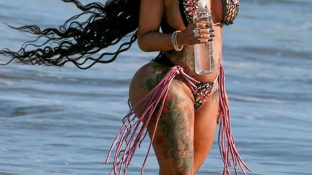 Поклонники 29-летней звезды обратили внимание на ее неестественно круглые ягодицы, которые Чайна активно демонстрировала в откровенном купальнике в черную сеточку.