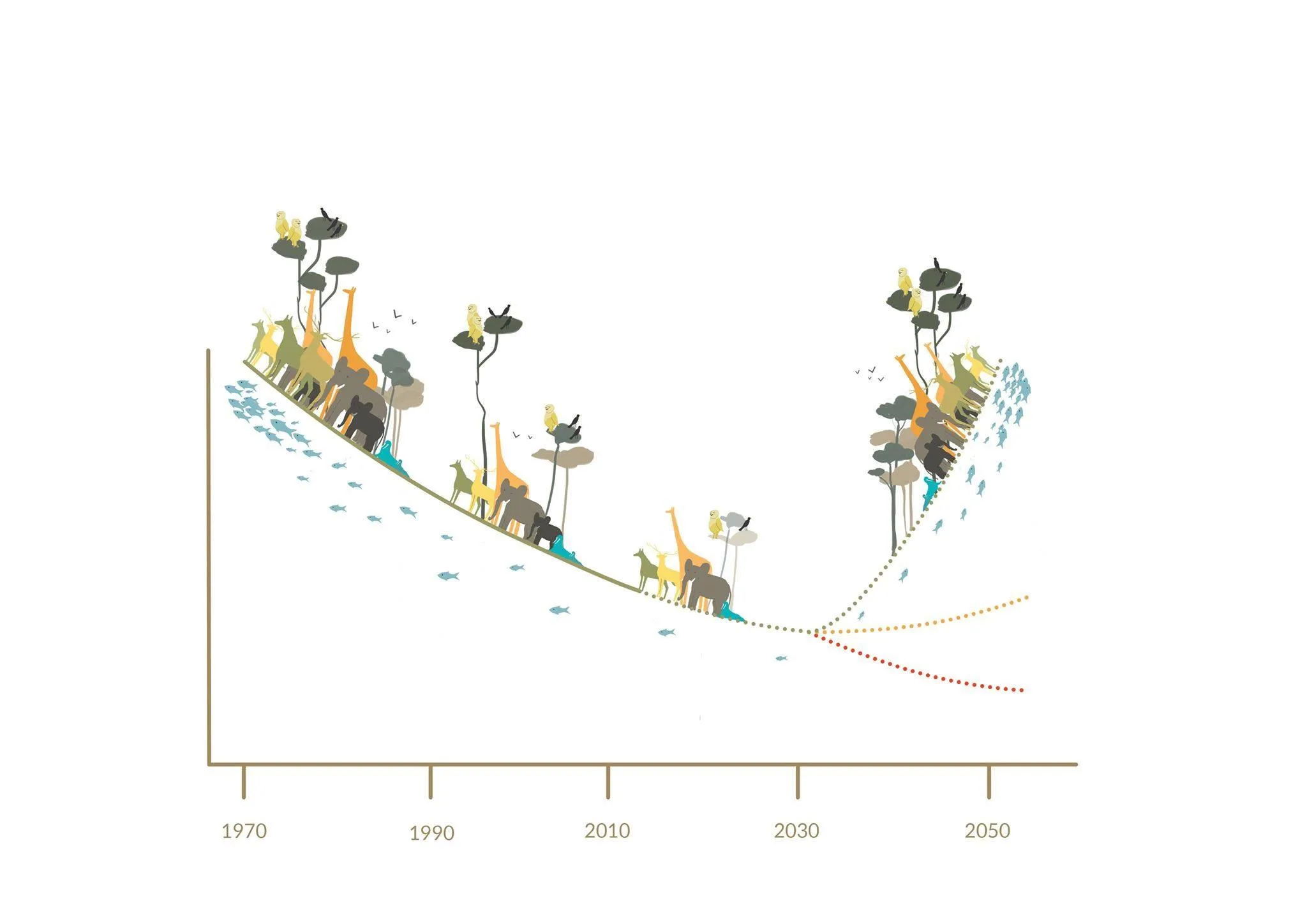 Среди основных причин стремительной потери биоразнообразия в мире ученые называют "Большое ускорение". Это явление началось с 1950 года, когда деятельность человека стала стремительно рости (добыча полезных ископаемых, урбанизация, увеличение количества населения), в то же время это спровоцировало резкое увеличение спроса на энергию и территорию и привело к беспрецедентным изменениям на планете.