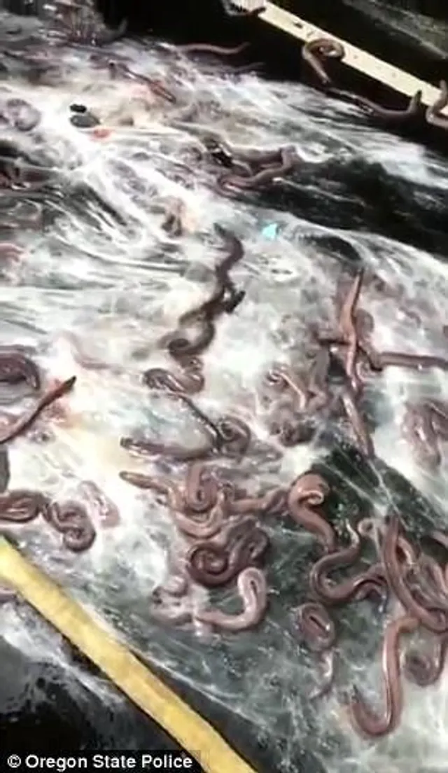 В издании отмечают, что в грузовике ехало почти 3,5 тысяч килограммов угрей, размером со среднюю змею. Их планировали доставить в Корею, где их считают местными деликатесами.