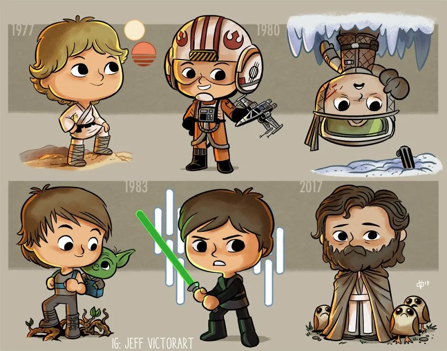 Художник из Лос-Анджелеса Джефф Виктор решил нарисовать эволюцию наиболее знаковых персонажей с их ранних концепций до сегодня.