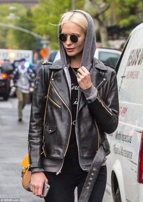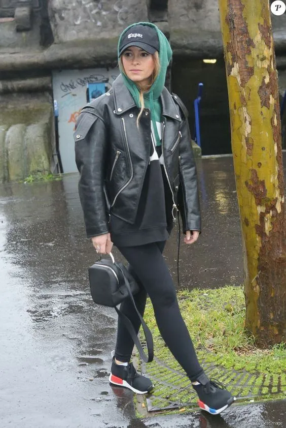 С кожаной курткой и леггинсами: