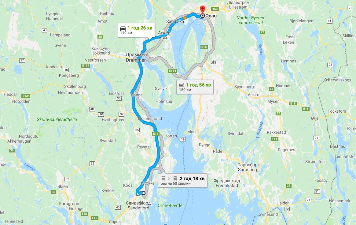 Расстояние между аэропортом "Осло Торп" в Норвегии и Осло – более 100 километров