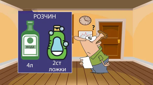 Если под рукой не оказалось специальных средств ухода за ламинатом, в комнатах с большой проходимостью оттереть грязь можно с помощью раствора 4 литра воды на 2 столовые ложки детского шампуня. Не очень затоптанное покрытие достаточно эффективно очищается раствором уксуса с водой в пропорции 1:4.
