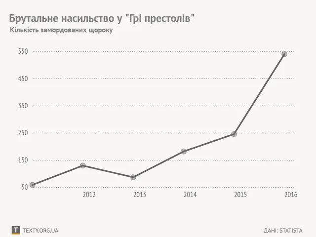 В 2011 году по результатам первого сезона количество смертей на экране была на уровне 59 человек, а уже в шестом сезоне таких было 540.