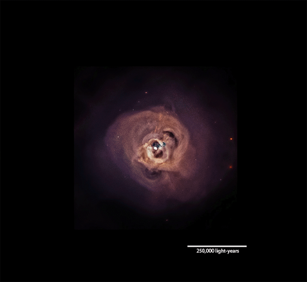 Такая волна сформировалась несколько миллиардов лет назад, а температура газа настолько высока, что он выделяет мощное рентгеновское излучение.
