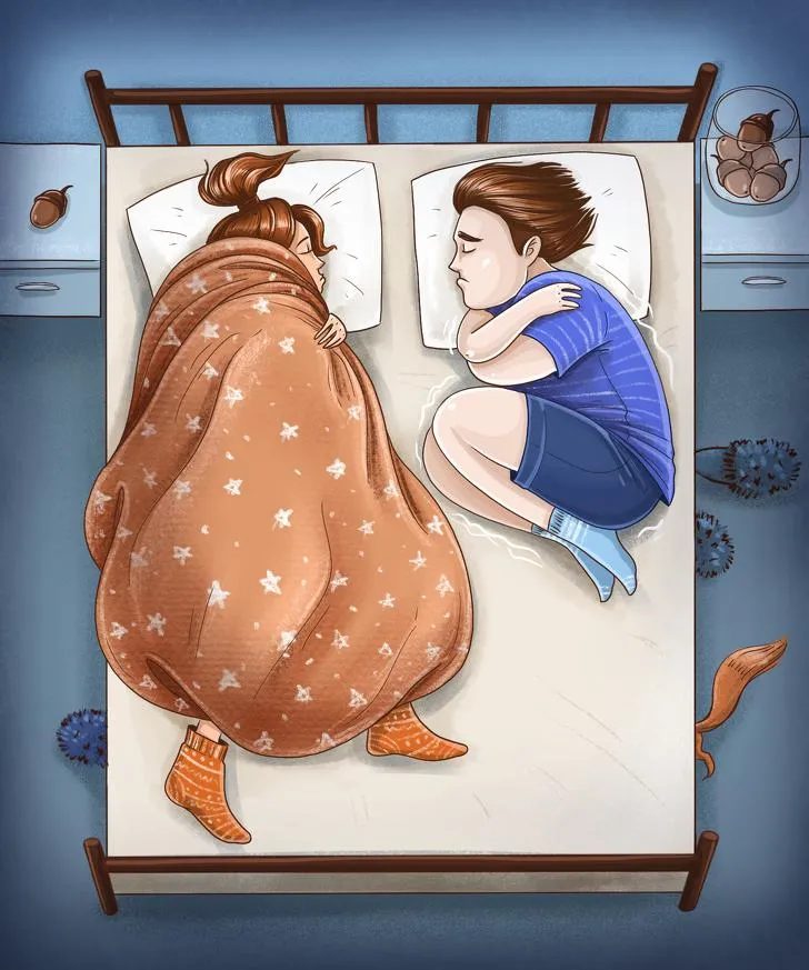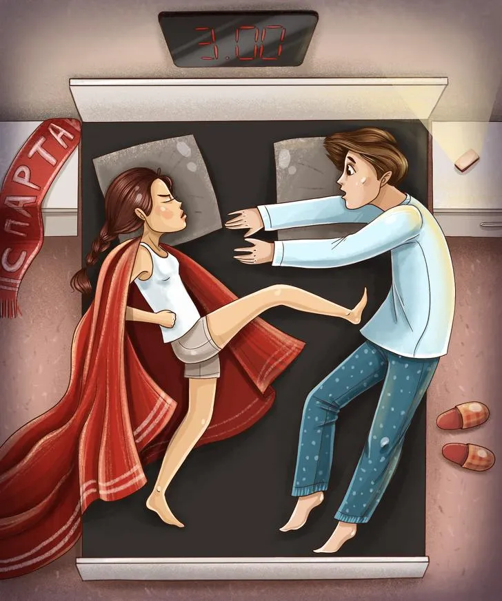 Например, пары, которые любят толкаться ночью, – будто из фильма "Титаник", "Форрест Гамп" или "300 спартанцев". А те, кто постоянно воруют одеяло во время сна – герои "Ледникового периода".