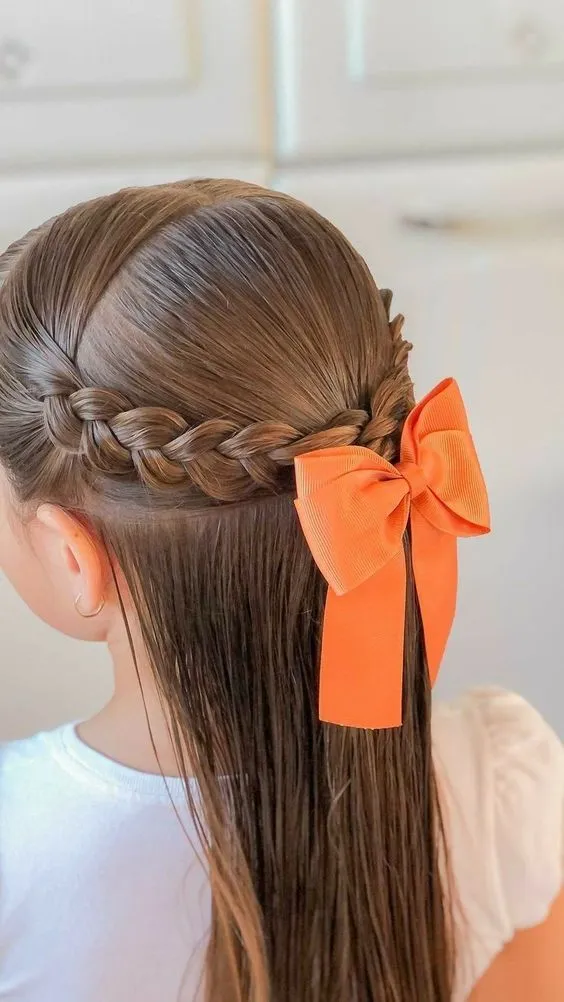 Эта идея прически очень удобна – волосы не будут мешать ребенку, ведь они будут поддерживать заплетенный ободок. К слову, в него можно вплести атласные ленты.