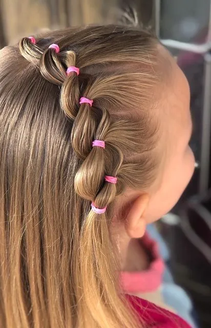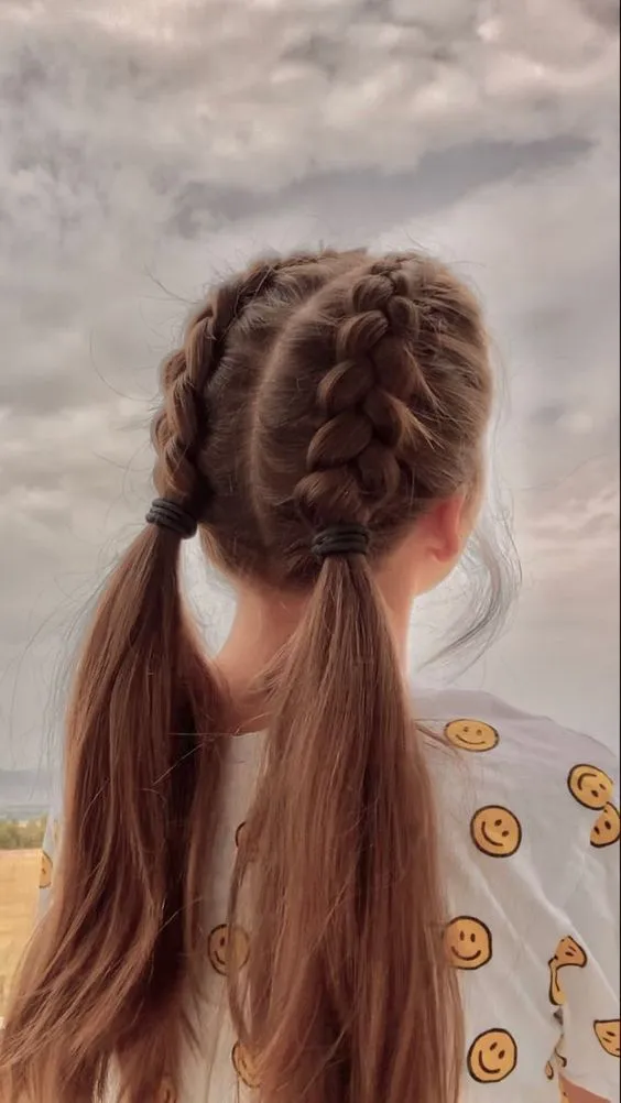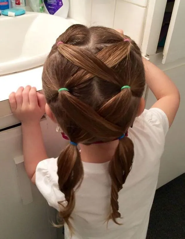 Эта прическа так и веет стилем королев и принцесс, потому понравится ребенку. Заплетите прямые колосья с двух сторон и закрепите их резинкой и украшением.
