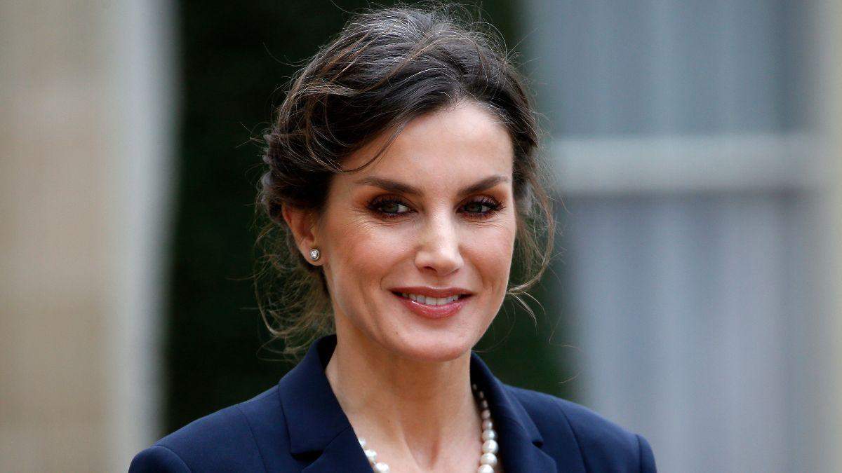 Королева Летиция любит собирать волосы в хвост, и на этот раз сделала именно так. На лице у нее был макияж с акцентом на глазах.