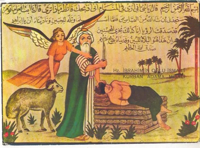 По указу Аллаха к пророку Ибрагиму явился Ангел Джабраил, велевший ему отдать в жертву своего ребенка. Пророк долго думал, что ему делать, но решился сделать жертвоприношение потомка.