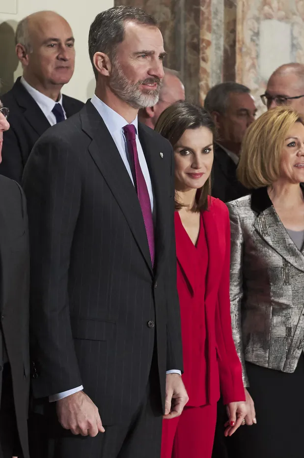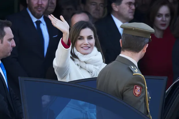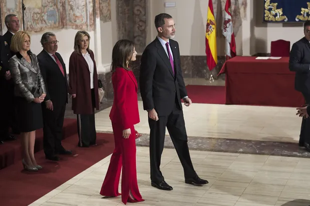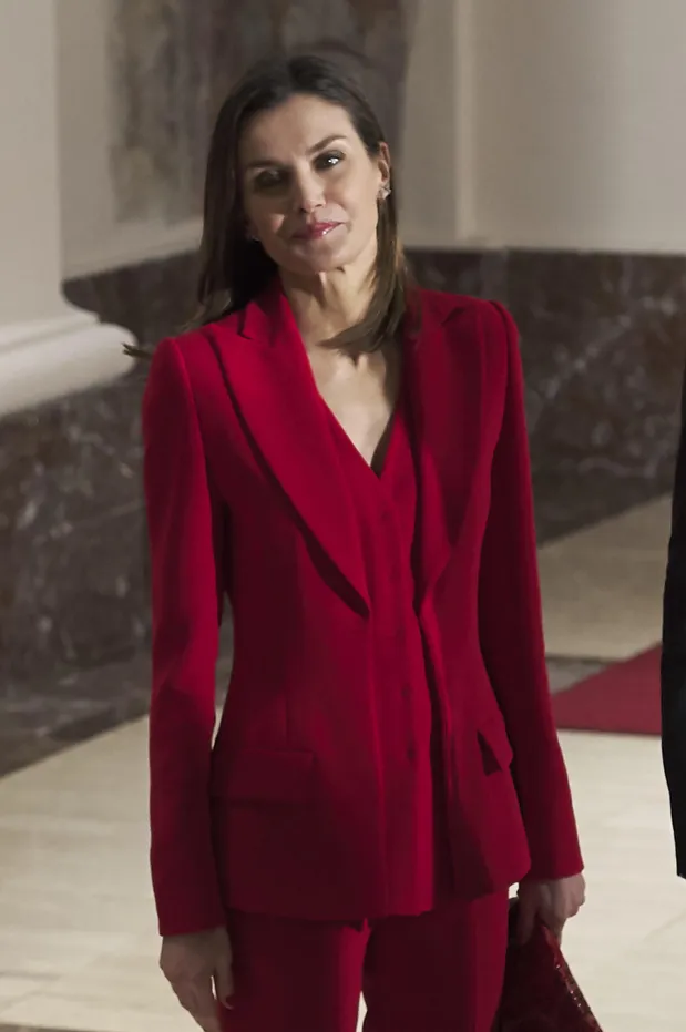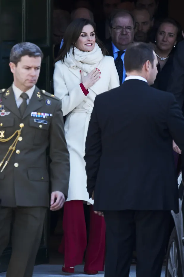 Появление королевы Летиции привлекло внимание всех участников мероприятия. Для модного выхода она одела яркий брючный костюм, который дополнила белым пальто и шарфом. Летиция подобрала туфли на каблуке такого же цвета, как и одежда. Изящные украшения и клатч, простая и одновременно элегантная укладка – вот секрет роскошного вида испанской королевы, который она продемонстрировала в Вальядолиде.