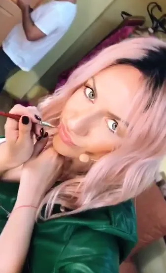 Леся Никитюк с розовыми волосами