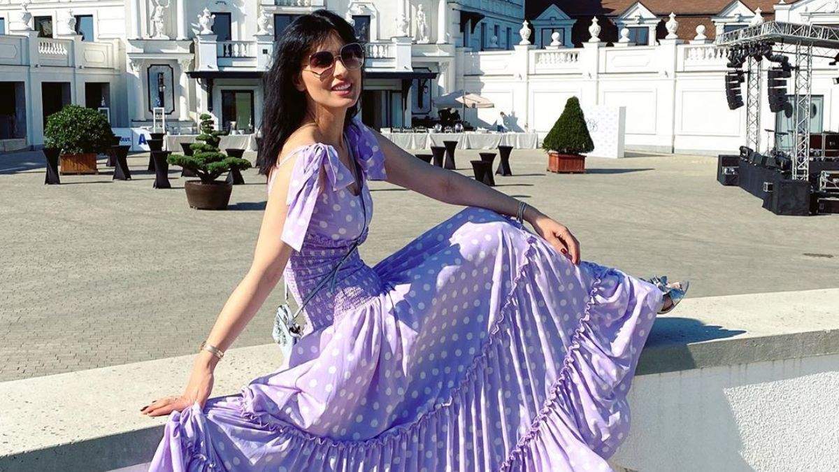Маша надела длинное платье лилового цвета с принтом в белый горошек. Наряд был интересного пошива, что сделало образ очень нежным и женственным. Знаменитость дополнила look стильными аксессуарами. Она выбрала маленькую серую сумочку через плечо, которая была красиво задекорирована. Главный акцент сделала на светлом шляпе с цепочкой от известного украинского дизайнера Ruslan Baginskiy.