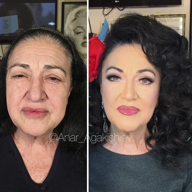 Анар работает в собственной студии. Наиболее впечатляющие трансформации он создает при работе с пожилыми женщинами.