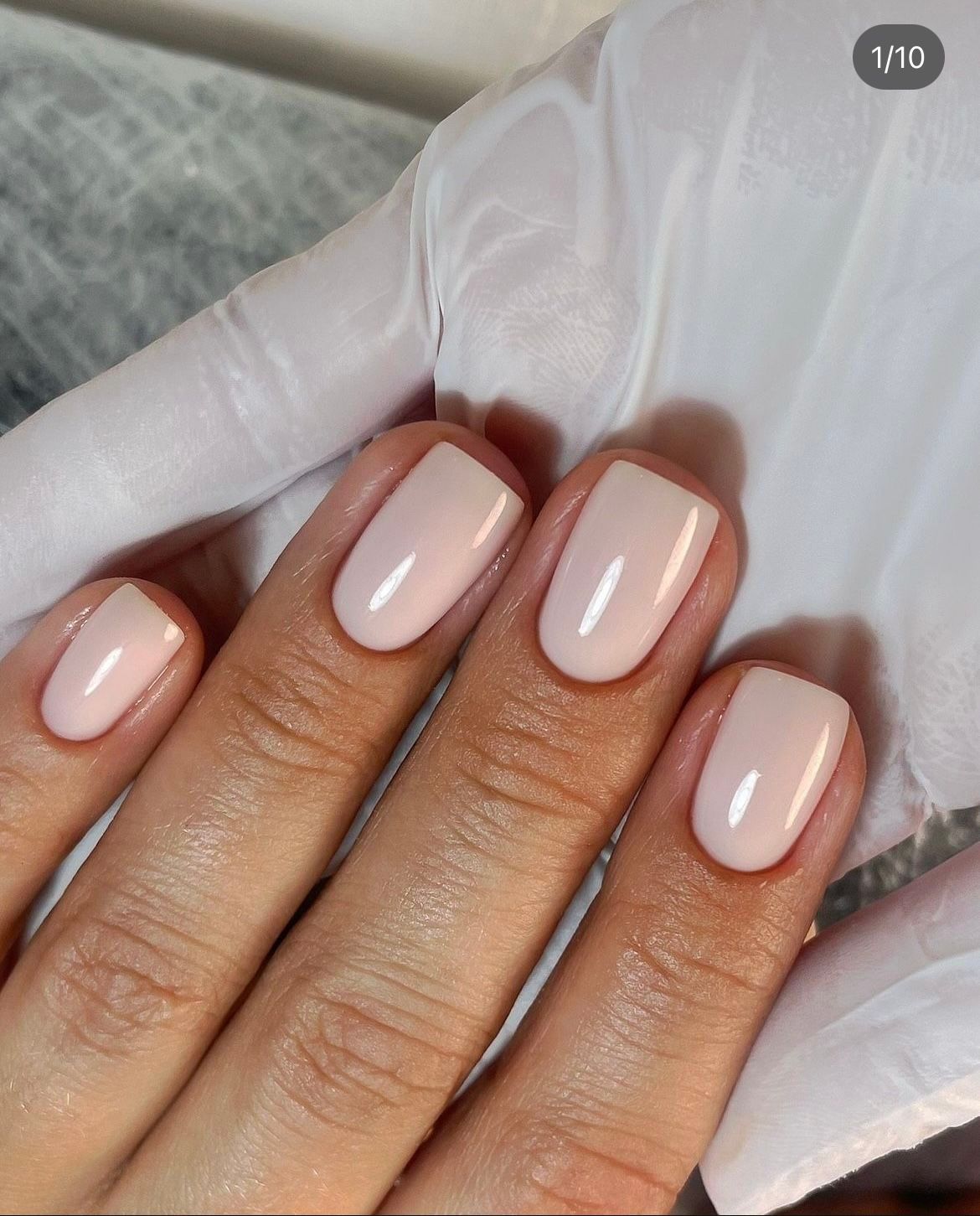 - Вечная классика – это однотонный нюдовый маникюр. Молочный, пудрово-розовый, бежевый – те оттенки, которые омолаживают руки.