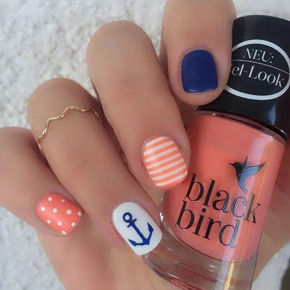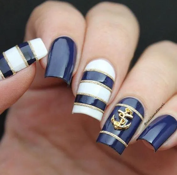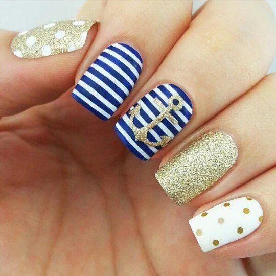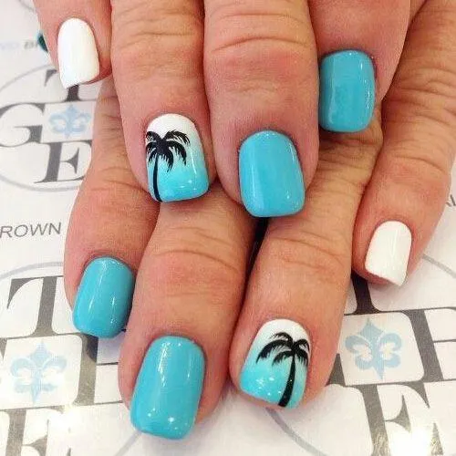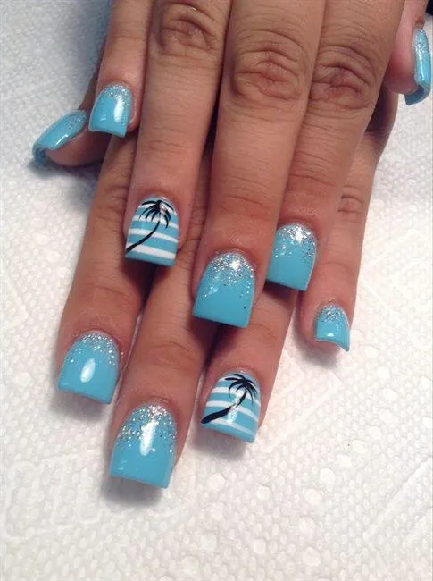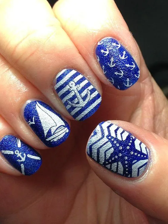 Также не забывайте об интересных принтпх, которые разнообразят ваш маникюр: традиционные якоря, корабли, дельфины, морские звезды, цветы, ракушки и пальмы – те элементы дизайна, которые никогда не надоедают настоящим модницам.