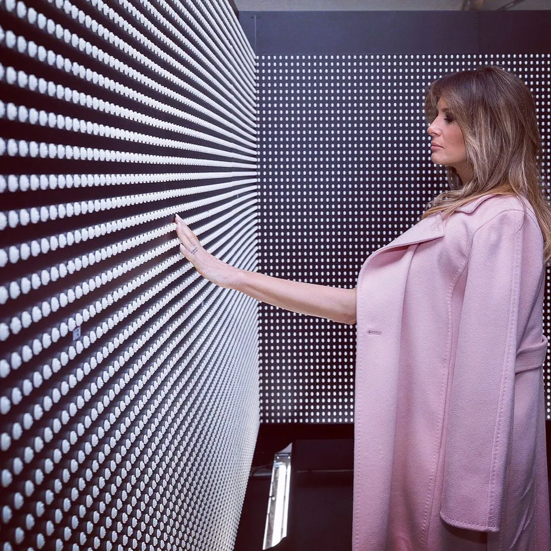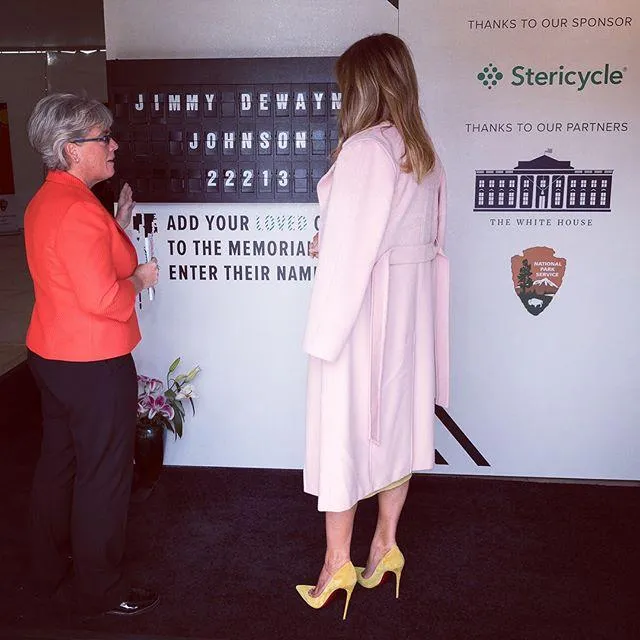 Для открытия мемориала "Обреченный на смерть" первая леди надела нежно-розовое пальто от бренда Max Mara и желтое элегантное платье. К одежде Мелания Трамп подобрала обувь на каблуках от Christian Louboutin, которая мило дополнила изящный "лук". Весенний яркий образ облюбовали более 58 тысяч пользователей сети.