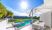Особняк состоит из трех спален, трех ванных комнат, комбинированной гостиной со столовой, террасы, заднего двора с газоном, открытого камина, бассейна с морской водой, спа-центра и гаража.