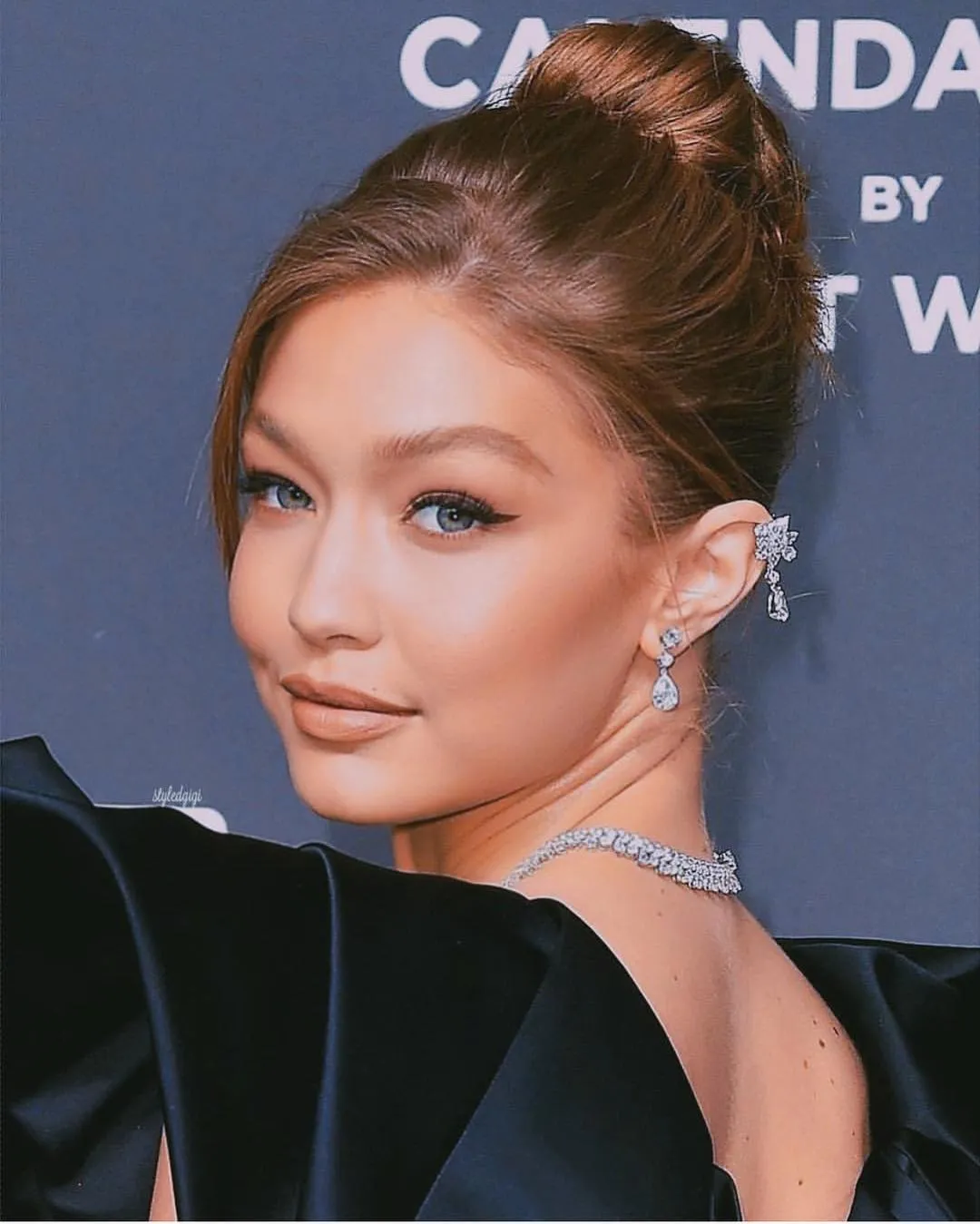 Джиджи Хадид стала настоящей королевой мероприятия от Pirelli. Девушку привыкли видеть на красных дорожках с распущенными волосами и неярким макияжем, однако на этот раз она подобрала пряди волос в лаконичный пучок и сделала акцент на глаза с помощью стрелок.