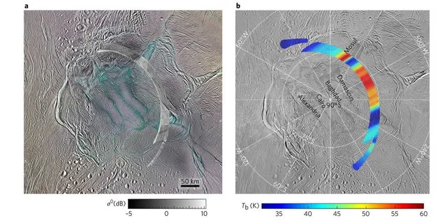 Международная группа ученых открыла интенсивное тепловое излучение, которое поступает из недр спутника. По оценкам, его источник находится в 30-50 километрах к северу от "тигровых борозд" спутника Сатурна.