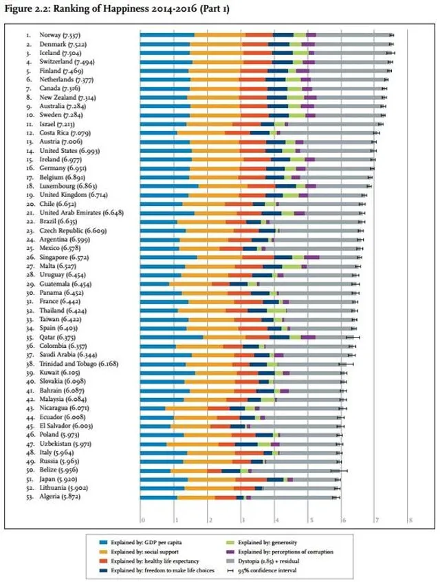 Об этом свидетельствуют данные отчета World Happiness Report 2017.