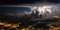 На кадрах видно, как мощная вспышка белого света рассекает черное облачное небо.