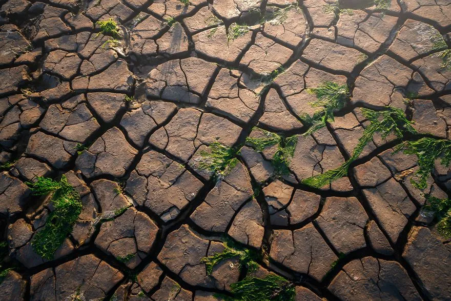 "Узоры, образующиеся из сухой почвы, являются чем-то действительно фотогенним. Вот 10 фотографий, которые показывают влияние засухи на побережье Голландии. С приливами вода поступает в почву и виднеется в его трещинах, но территория все равно сохраняет свои текстуры. Это то, на что мы часто не обращаем внимание", – рассказал Альберт Дросте.
