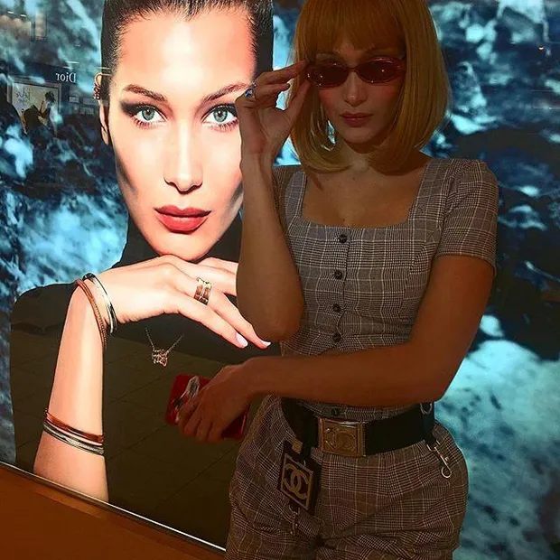 Перед камерой популярная манекенщица позирует в клетчатом костюме от Chanel и черном топе и кожаных штанах. Стоит отметить, что Белле Хадид очень подходит примерянный образ, а ее стройная фигура – мечта многих женщин.