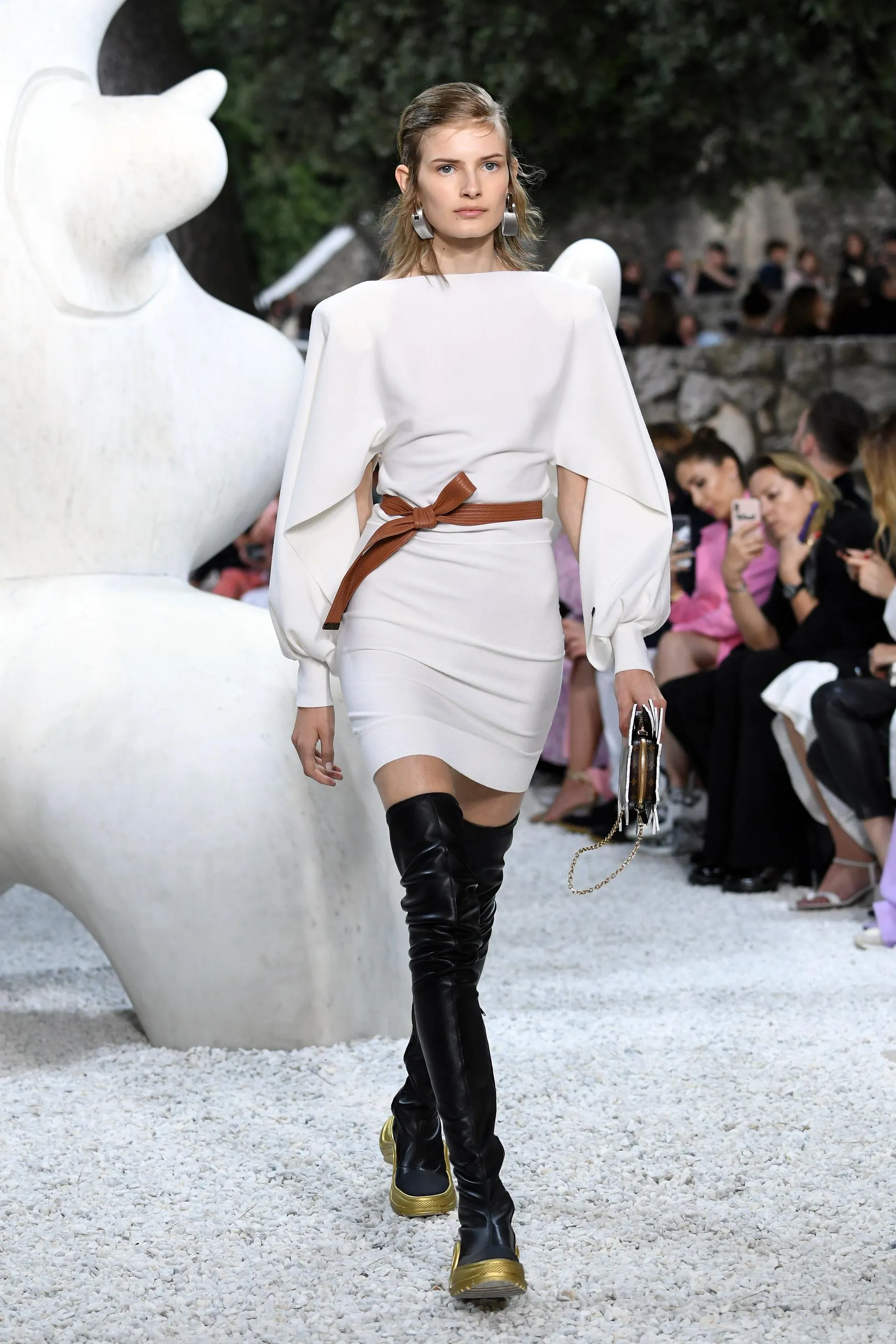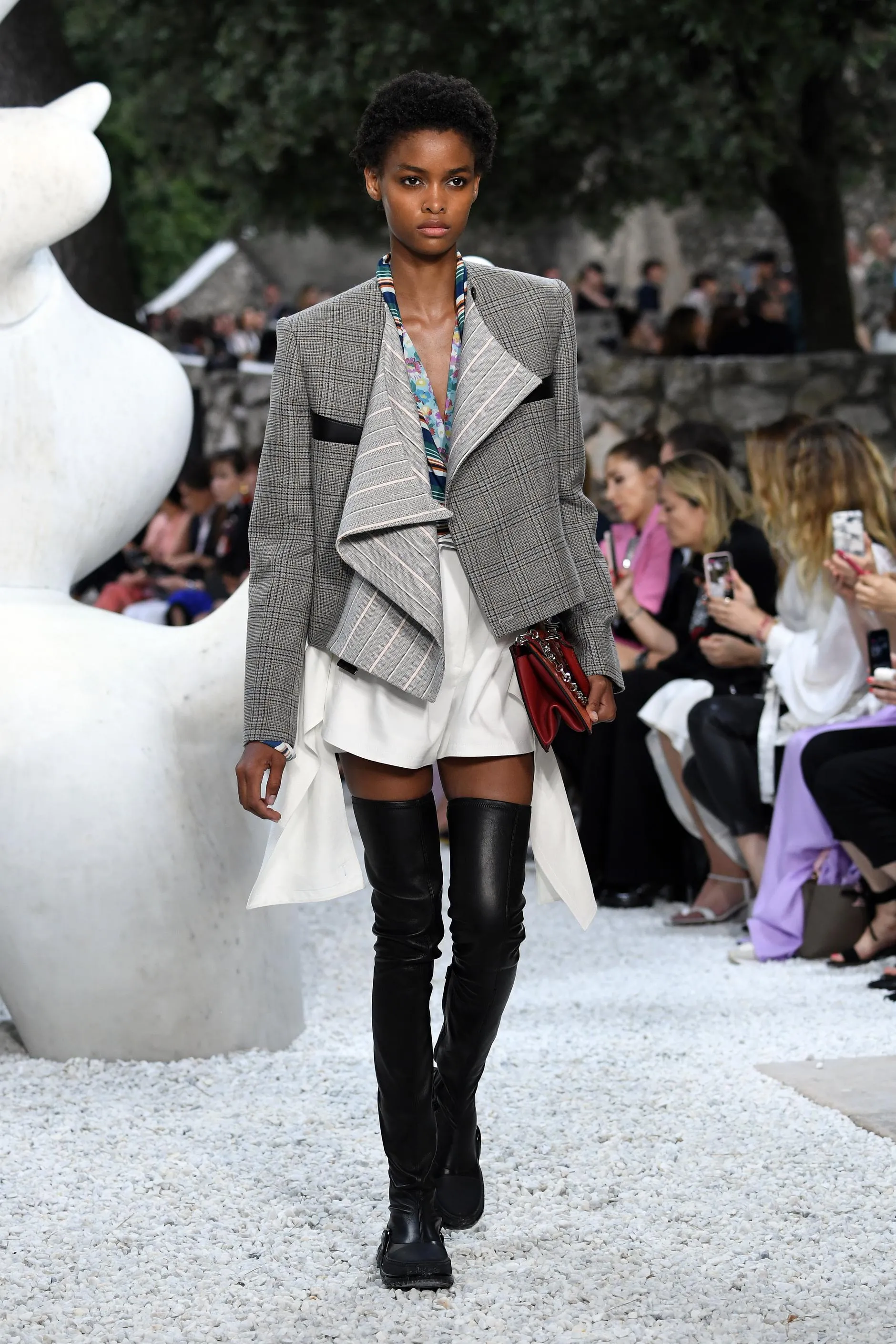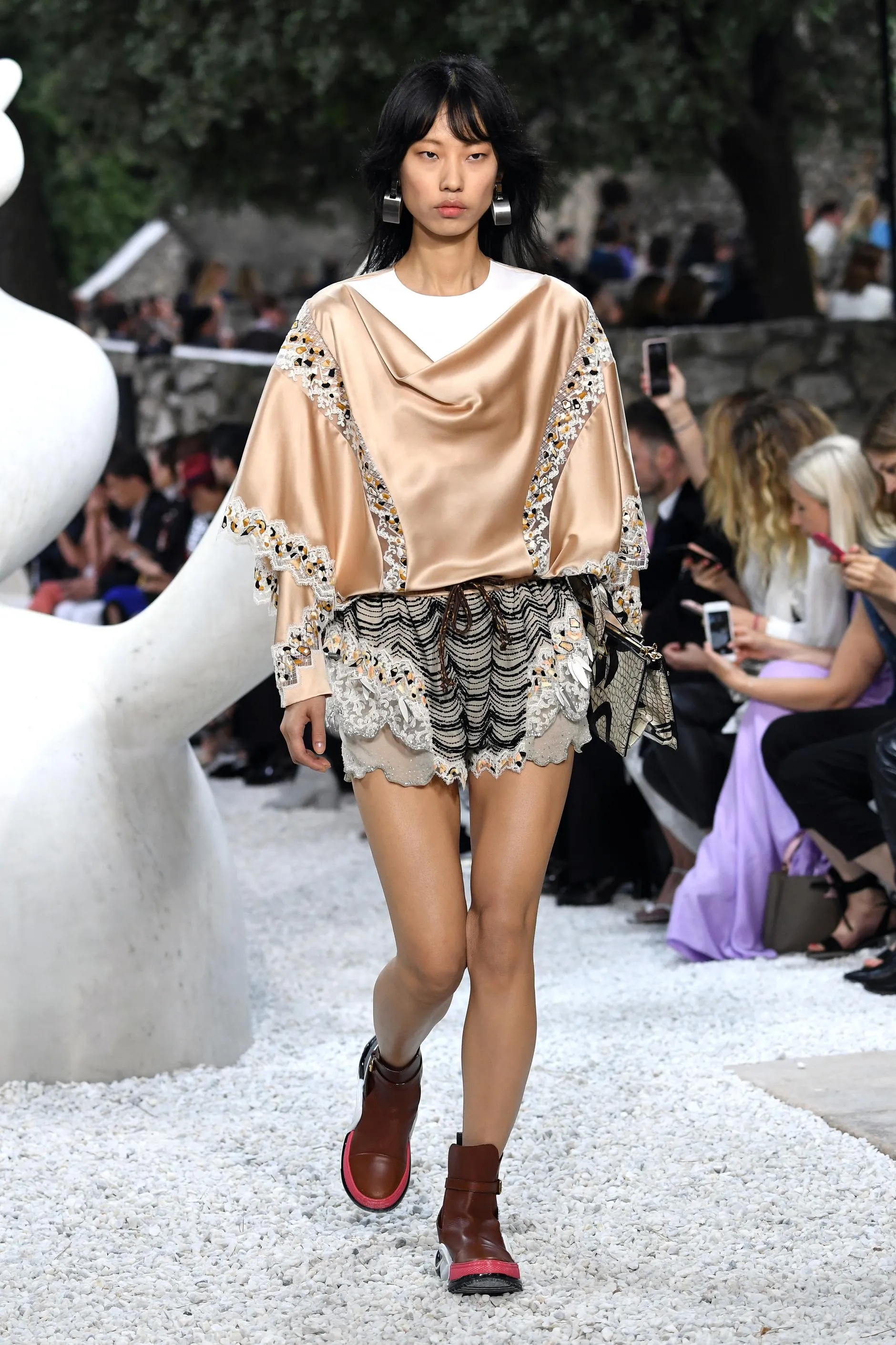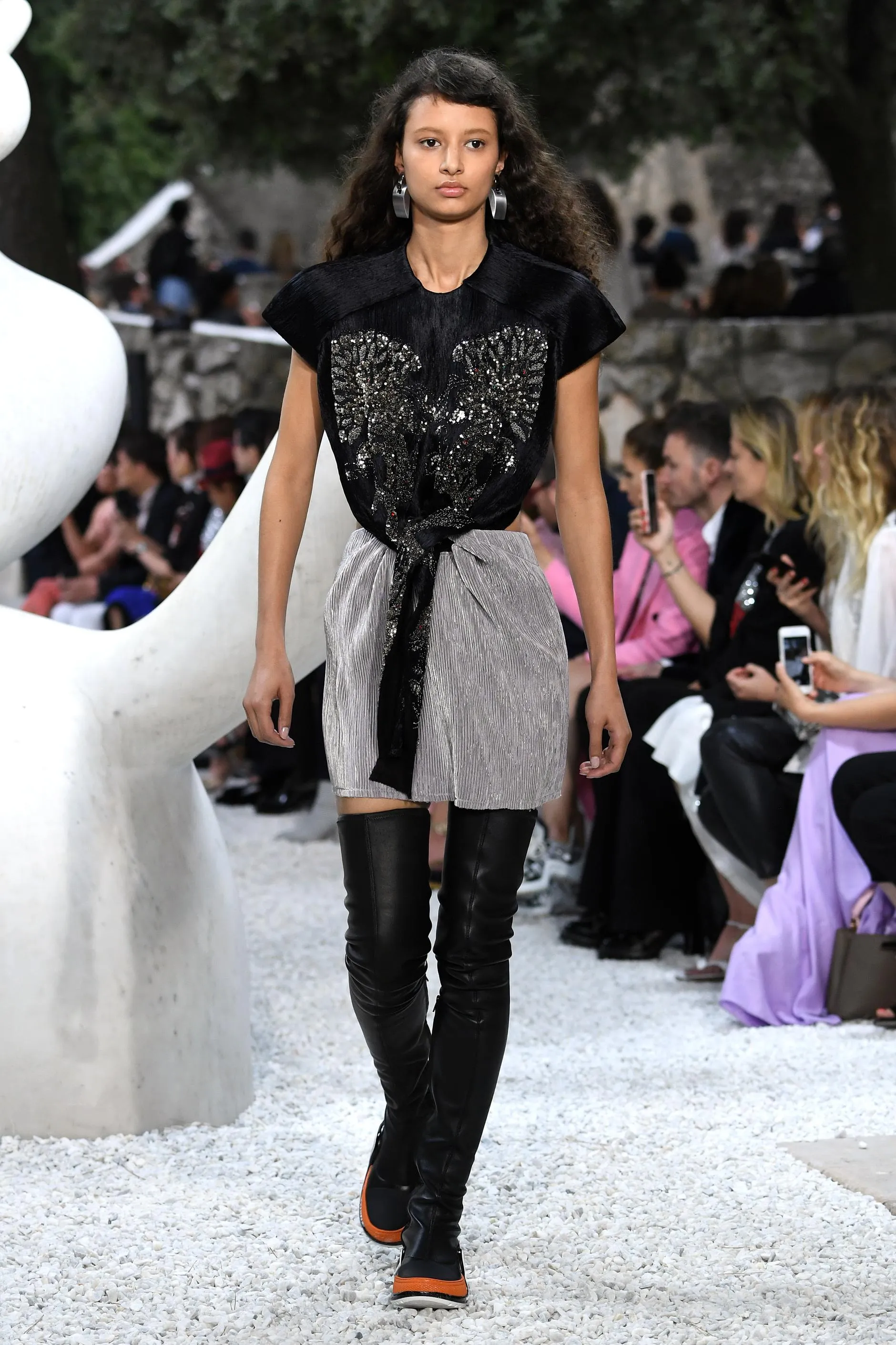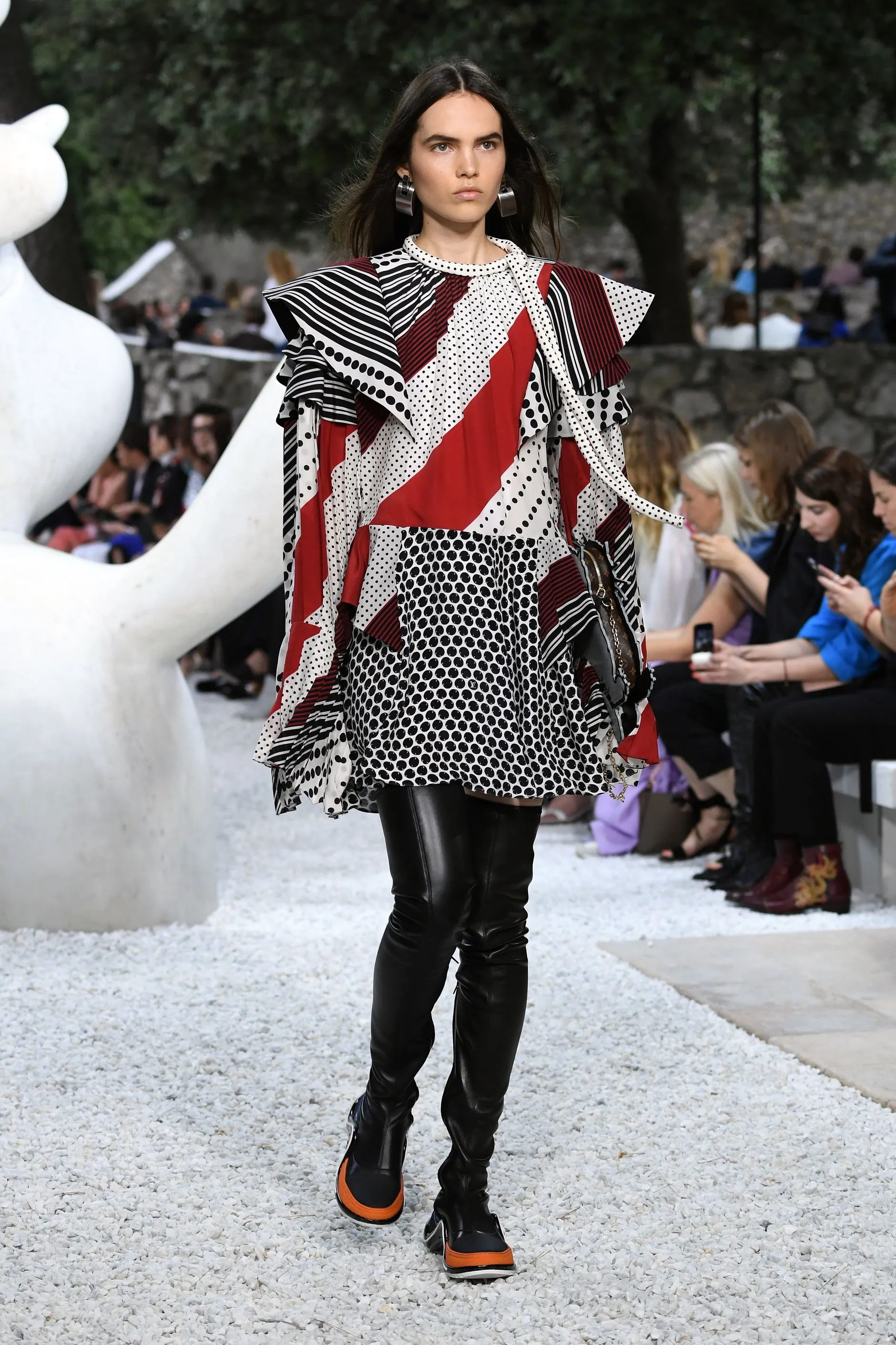 Новая круизная коллекция Resort 2019 отметилась неожиданными костюмами, похожими на героев "Звездных войн", стильными платьями в стиле 1980 и обувью-ботфортами с характерной подошвой. Среди цветовой гаммы преобладали классические оттенки: коричневый, серый, черный и белый.