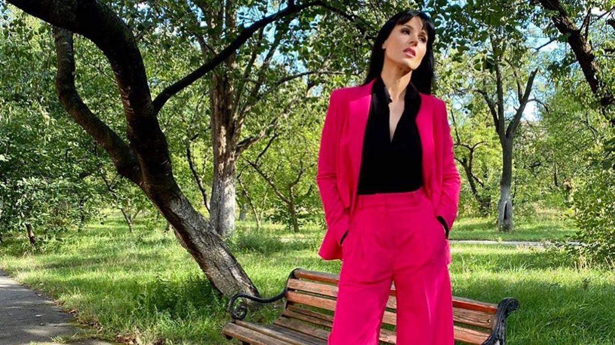 На своей личной странице в Инстаграме знаменитость предстала в штанном костюме украинского дизайнера Елены Бурениной.