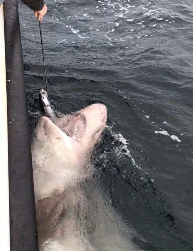 Сложность заключалась в том, что акула была слишком велика, чтобы затянуть ее на 12-метровое рыболовецкое судно. Но рыбаку удалось довести дело до конца.