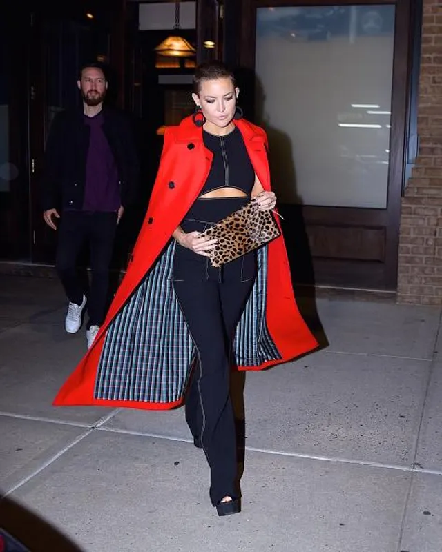 Кейт Хадсон в изысканном красном пальто на Матхеттене, Нью-Йорк: