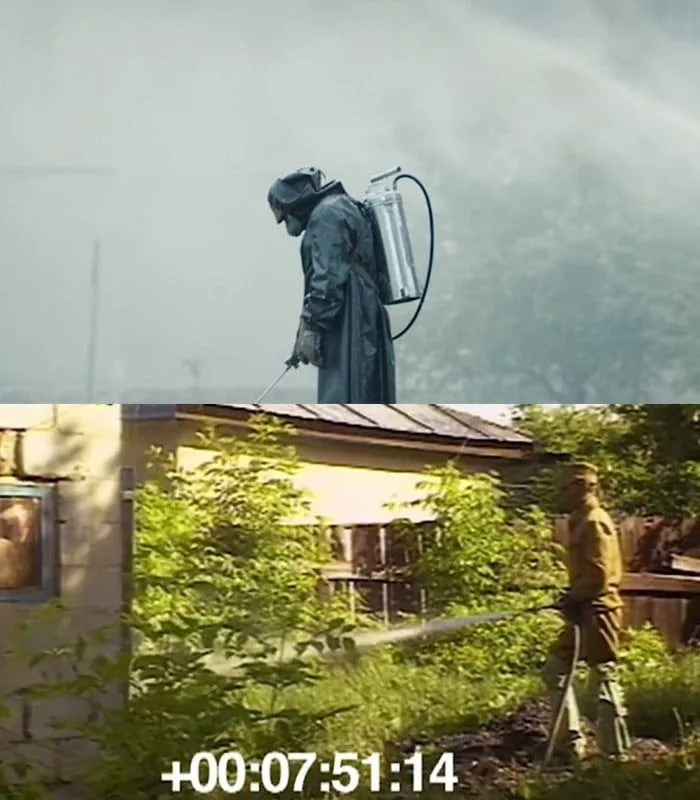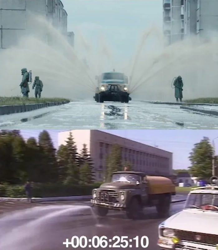 Представители телеканала HBO осознавали, что, снимая такую картину, они берут на себя большую ответственность за то, чтобы максимально реалистично передать то, что происходило в прошлом. В сети появились интересные фотосравнения, где авторы снимков противопоставили кадры из сериала и настоящие хроники 1986 года.