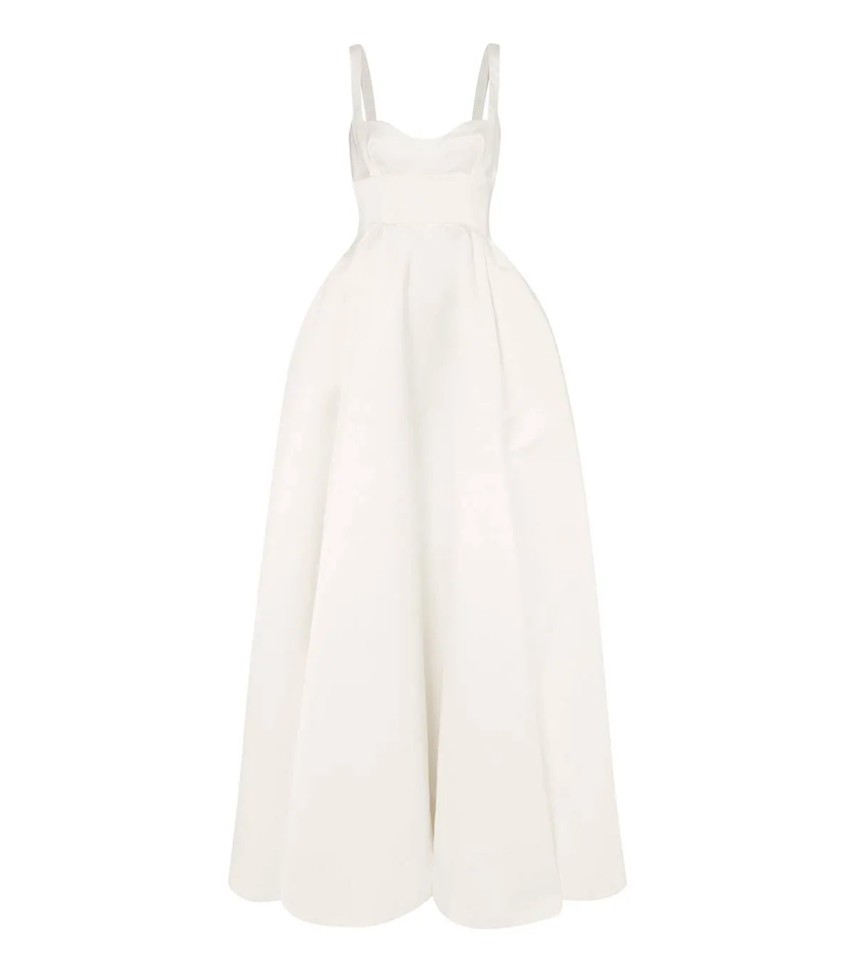 Основательницы бренда Floravere Дениз Джин и Моли Канг советуют обратить внимание на минималистичные платья из структурированных тканей, таких как матовый атлас.