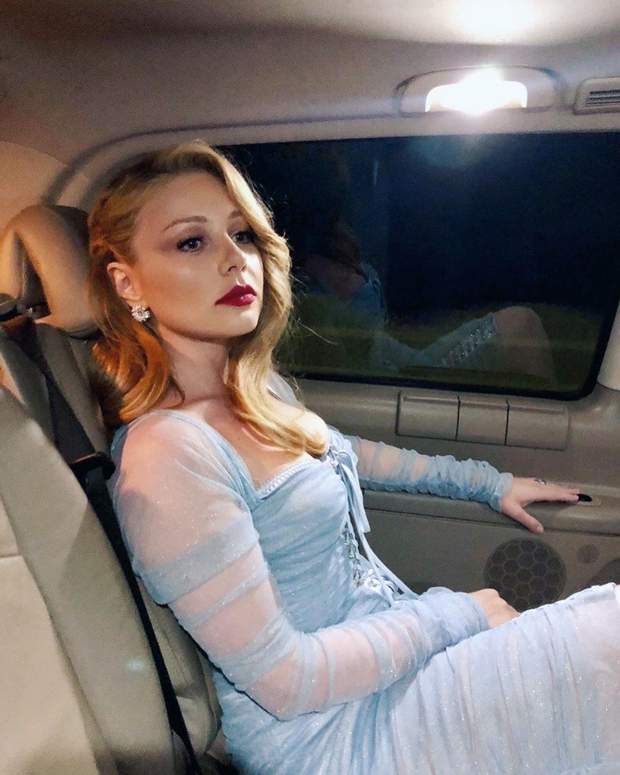 Тина Кароль красовалась в голубом платье от легендарного бренда Dolce & Gabbana. Наряд имел прозрачные шифоновые рукава и серебристые завязки.